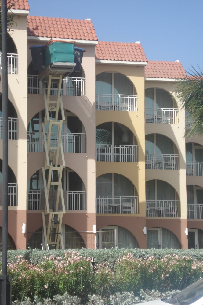 Renovatie van 327 kamers , demontage en montage uitgevoerd door Mexim , productie van 327 stuks nieuwe aluminium kozijnen door Aluberg Aruba NV.